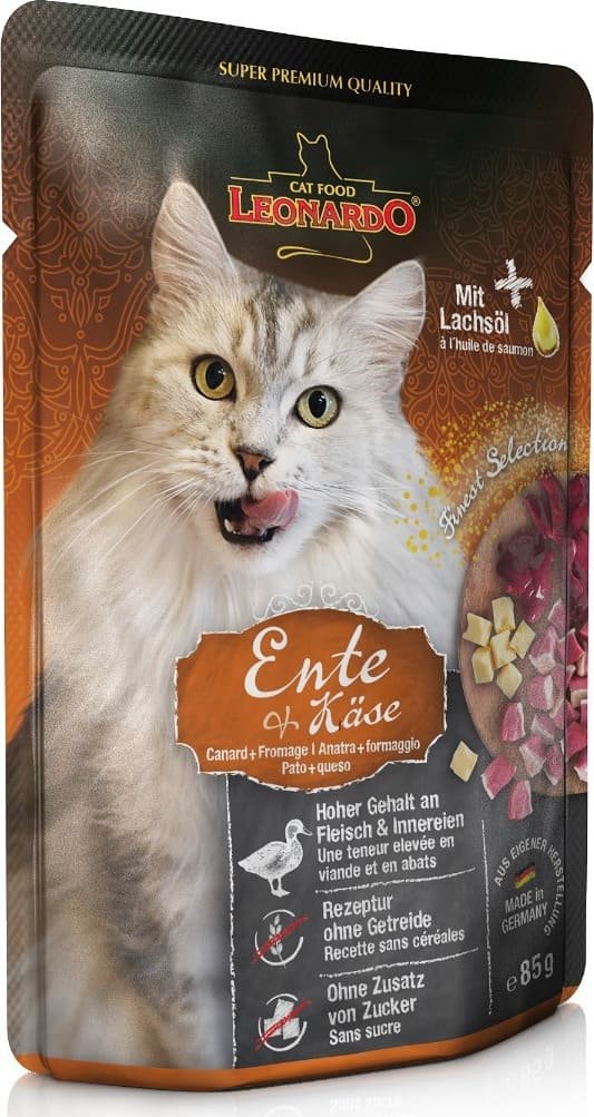 Υγρή τροφή με ψιλοκομμένα κομματάκια σε σάλτσα, από την Leonardo, κατάλληλη για ενήλικες γάτες. Βοηθάει στην καλύτερη ενυδάτωση του οργανισμού της γάτας σας και καθώς περιέχει χαμηλό ποσοστό σε υδατάνθρακες σε σύγκριση με τη ξηρά τροφή, συμβάλλει στην αποφυγή δυσπεψιών.