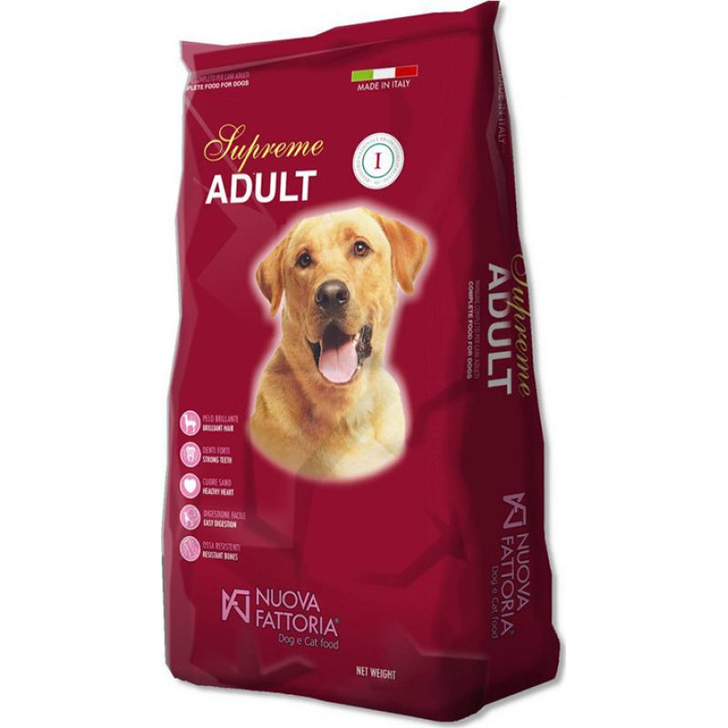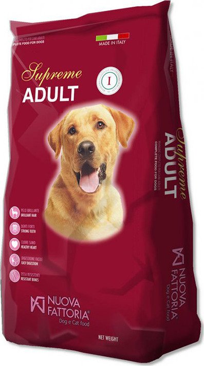 Ξηρά τροφή από την Nuova Fattoria, κατάλληλη για ενήλικους σκύλους. Είναι ιδανική για μια ισορροπημένη διατροφή και προσφέρει την απαραίτητη ενέργεια που χρειάζονται για τις καθημερινές τους ανάγκες. Μπορείτε να επιλέξετε τη συγκεκριμένη τροφή ανεξάρτητα από τη φυλή, καθώς ενδείκνυται για όλα τα μεγέθη σκύλων.