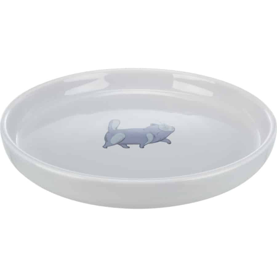 Πιάτο φαγητού και νερού για γάτες, από την Trixie, ιδανικό για βραχυκέφαλες φυλές με κοντή μουσούδα αλλά και για ανήλικες γάτες. Διαθέτει σχεδιασμό με χαμηλά τοιχώματα, ο οποίος αποτρέπει τη πίεση στην άκρη των μουστακιών της γάτας που μπορεί να της δημιουργήσει στρες. Είναι κεραμικό, ένα υλικό που το καθιστά πιο βαρύ ώστε να προσφέρει σταθερότητα και το κάνει να μην επηρεάζει τη γεύση του φαγητού και επίσης προστατεύει τη γάτας σας από την εμφάνιση ακμής στο πιγούνι της.