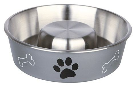 TRIXIE DOG BOWL SLOW FEED STAINLESS 1 L GREY