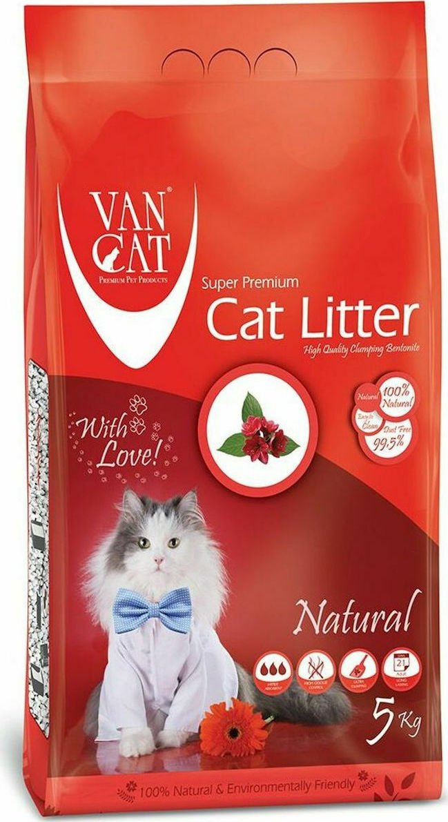 Άμμος γάτας μπετονίτη, από την Van Cat, κατάλληλη για όλες τις ανοιχτές ή κλειστές τουαλέτες. Ο μπετονίτης είναι φυσικό ορυκτό το οποίο έχει την ιδιότητα να απορροφά την υγρασία. Παράλληλα προσφέρει στη γάτα σας τη δυνατότητα να σκάψει και να καλύψει τα περιττώματά της. Ο καθαρισμός της πραγματοποιείται με την καθημερινή αφαίρεση των περιττωμάτων, ενώ μπορείτε να αντικαταστήσετε όλη την άμμο μία φορά την εβδομάδα.